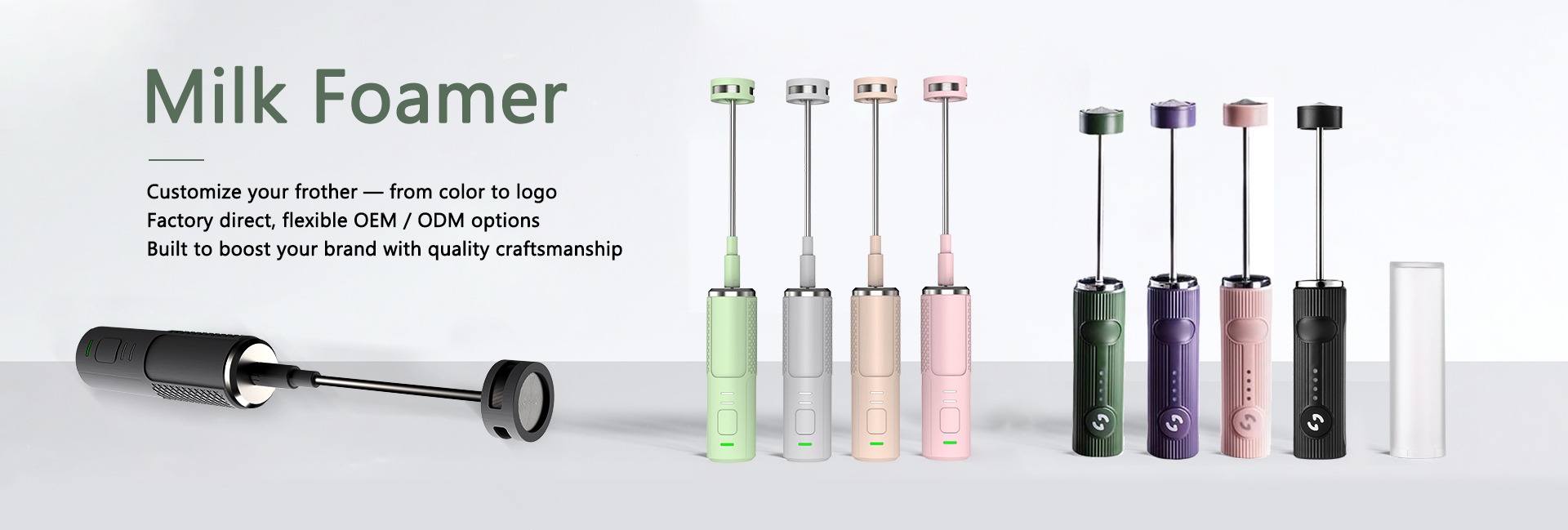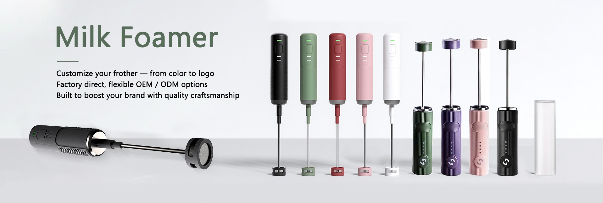 Espumador de leche de mano de plástico ecológico, batería eléctrica, fabricante de espuma, varita, mezclador de bebidas, batidor de acero inoxidable para café Matcha